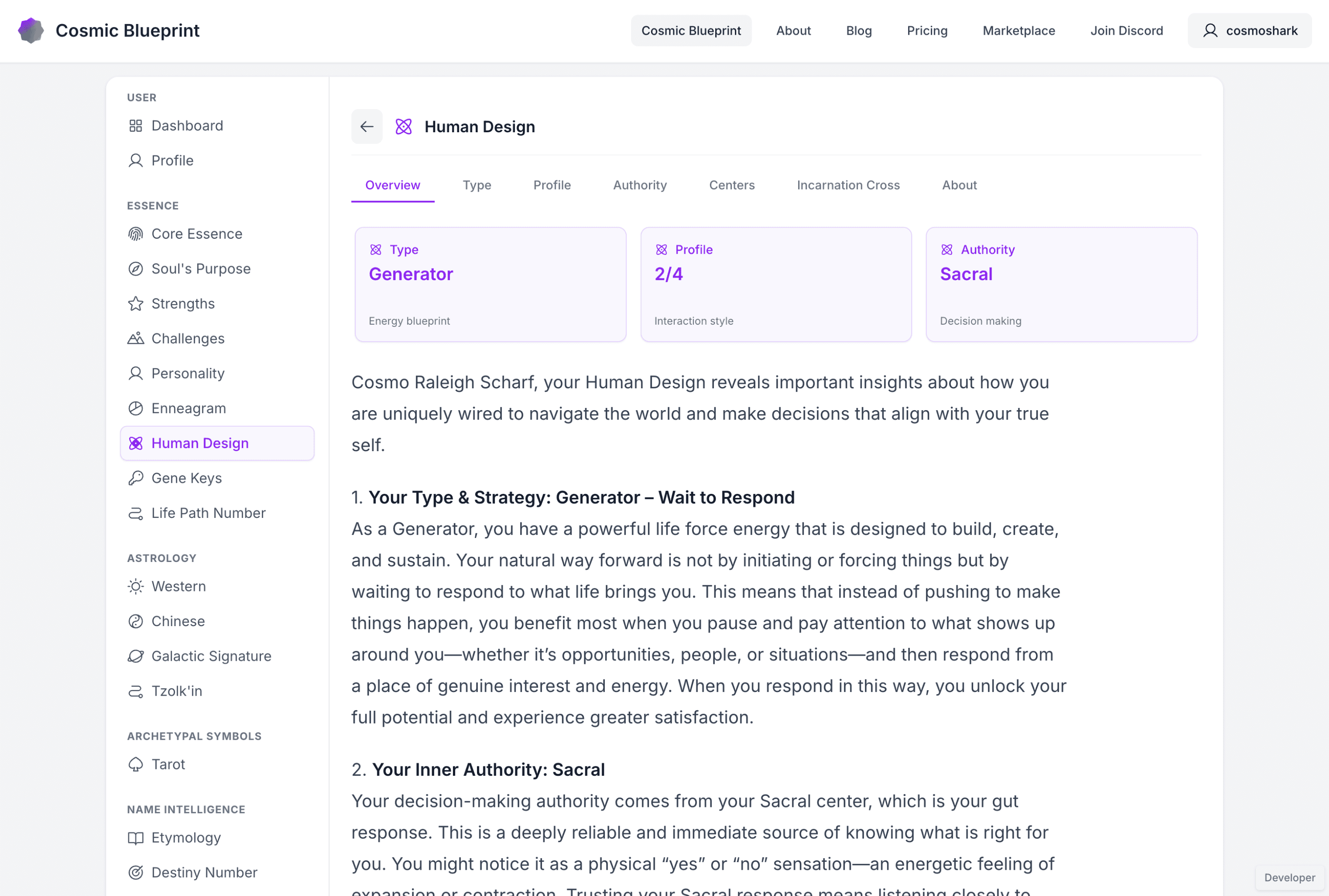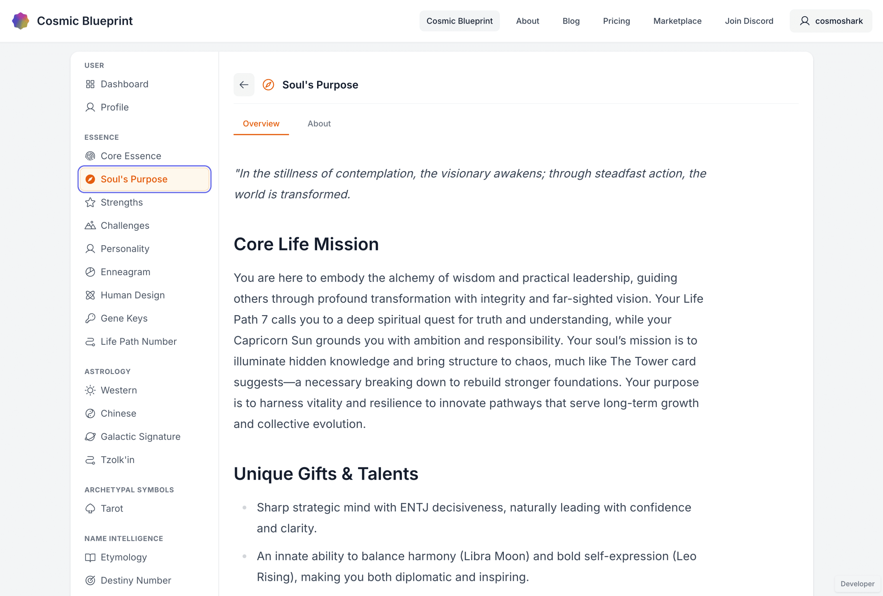I developed Cosmic Blueprint to solve a problem I experienced personally: while exploring various spiritual and personality systems for self-understanding, each offered valuable but fragmented insights. People interested in personal growth often engage with astrology, numerology, Human Design, and other wisdom traditions separately, but no tool existed to show how these systems interconnect to reveal a complete picture of someone's spiritual design.